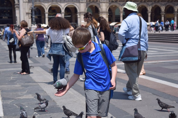 We flew from Iceland to Milan for one day. We suffered through an excruciating 2 1/2 hour walking tour with a couple of very bored kids just to see The Last Supper. FYI, if you want to see it, get your reservations months in advance otherwise the only way to see it is to do an overpriced tour. But The Last Supper was impressive (to Greg and me). We made it up to the kids by heading to the Gelato Festival where we were able to buy a pass to have all 14 flavors available that day. We did some park time and they really enjoyed chasing the pigeons in front of the Milan Cathedral.
