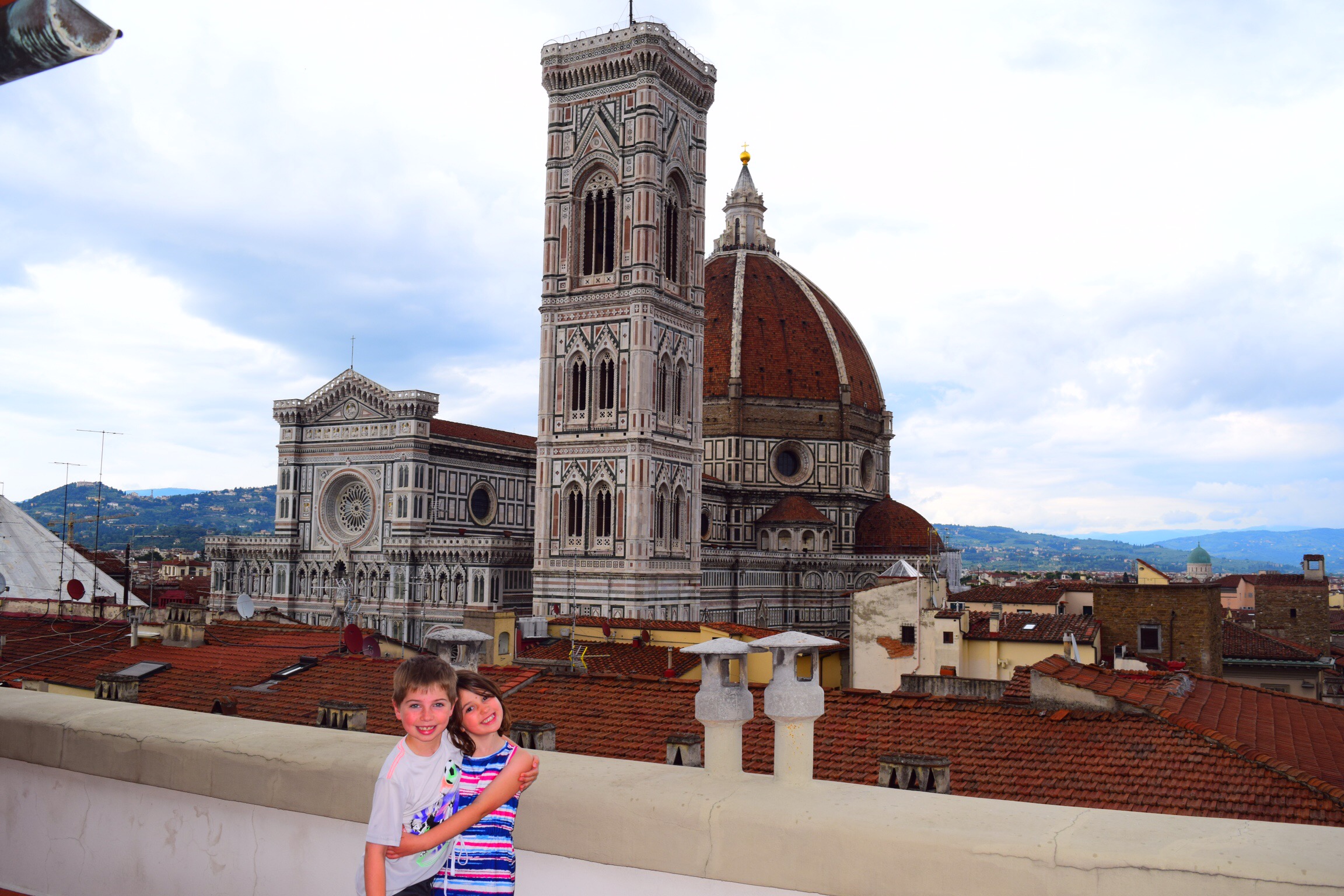 Next, we took the train to Florence. Our apartment was conviently located and beautiful, overlooking the Duomo and a 5 minute walk to the hands-on Leonardo daVinci museum which the kids liked and the museum where David is located, which we almost missed seeing entirely because we overslept and missed our ticket time. Thankfully they let us in anyway. One day, we walked to Ponte Vecchio, then the Boboli Gardens at the Palazzo Pitti, then had an amazing dinner out. Despite Taylor thinking we walked way too much here, we had a fantastic 4 days. The highlight though, was getting to see our good friends, the MacIntosh family who live here now. Taylor got to play with the girls and Greg and I got to speak to other adults besides each other. Oh, and the kids also loved the gelato. “They” definitely liked stopping for gelato every day, at least once.