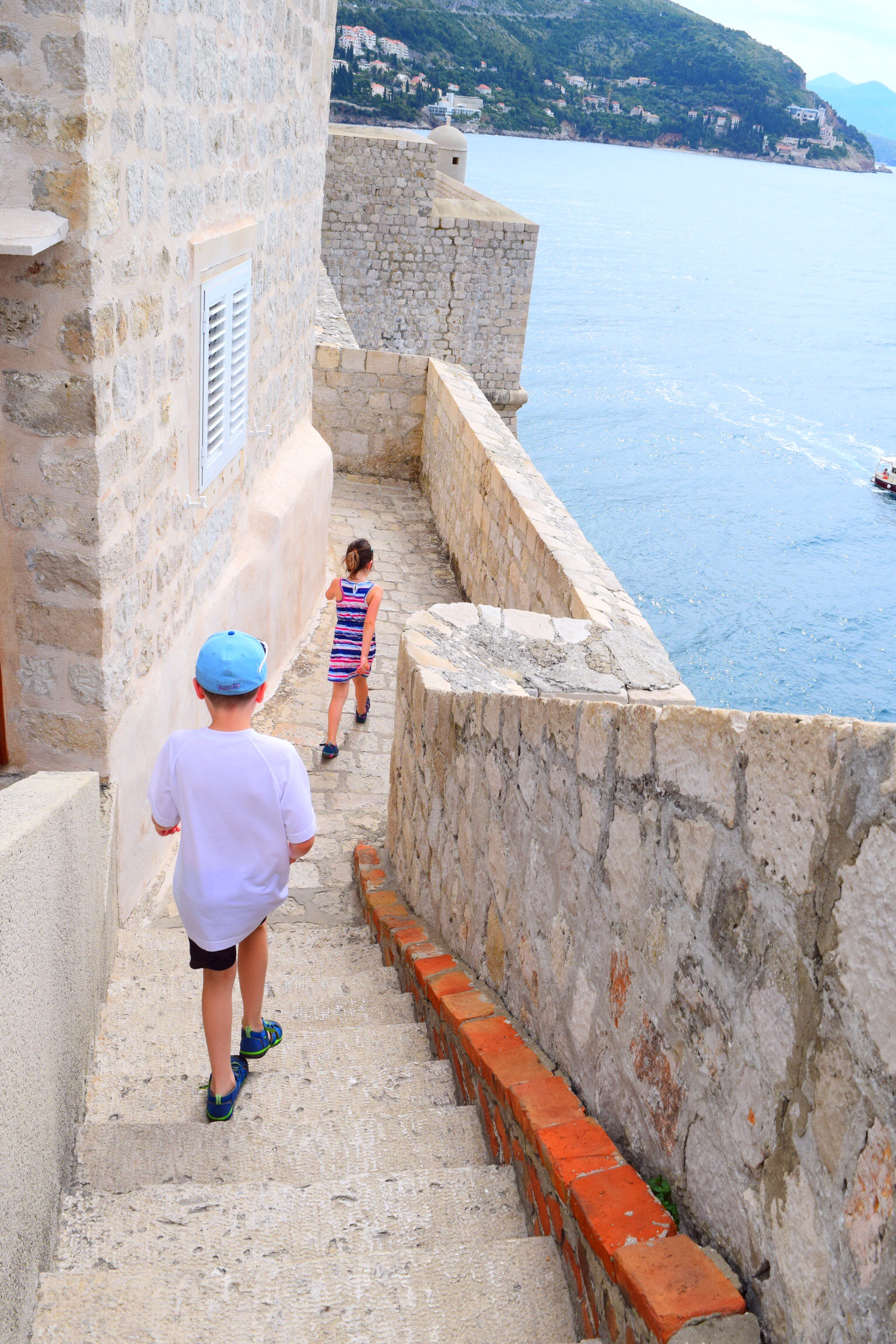 After leaving Rome, we took a short flight to Dubrovnik, Croatia. We spent 2 nights there which was just enough time. The highlight was walking the wall of Dubrovnik for spectacular views of the Adriatic Sea and of the Old Town inside the walls. We got there on Sunday which was lucky for us because there were no cruise ships so we had the wall nearly to ourselves. Greg and I had an amazing seafood lunch. Trip had a cheeseburger for the first time since leaving home (apart from the McDonalds at the train station in Florence) and after 2 weeks in Italy, Taylor chose pasta. Go figure. We took the cable car up for an amazing panoramic view of the city, the kids got some much needed pool time at the hotel, and Greg got in a museum of what they call the Homeland War. You can still see a lot of damage to the walls and rooftops here from the war in the 90’s and the Croatian people talk about it a lot.