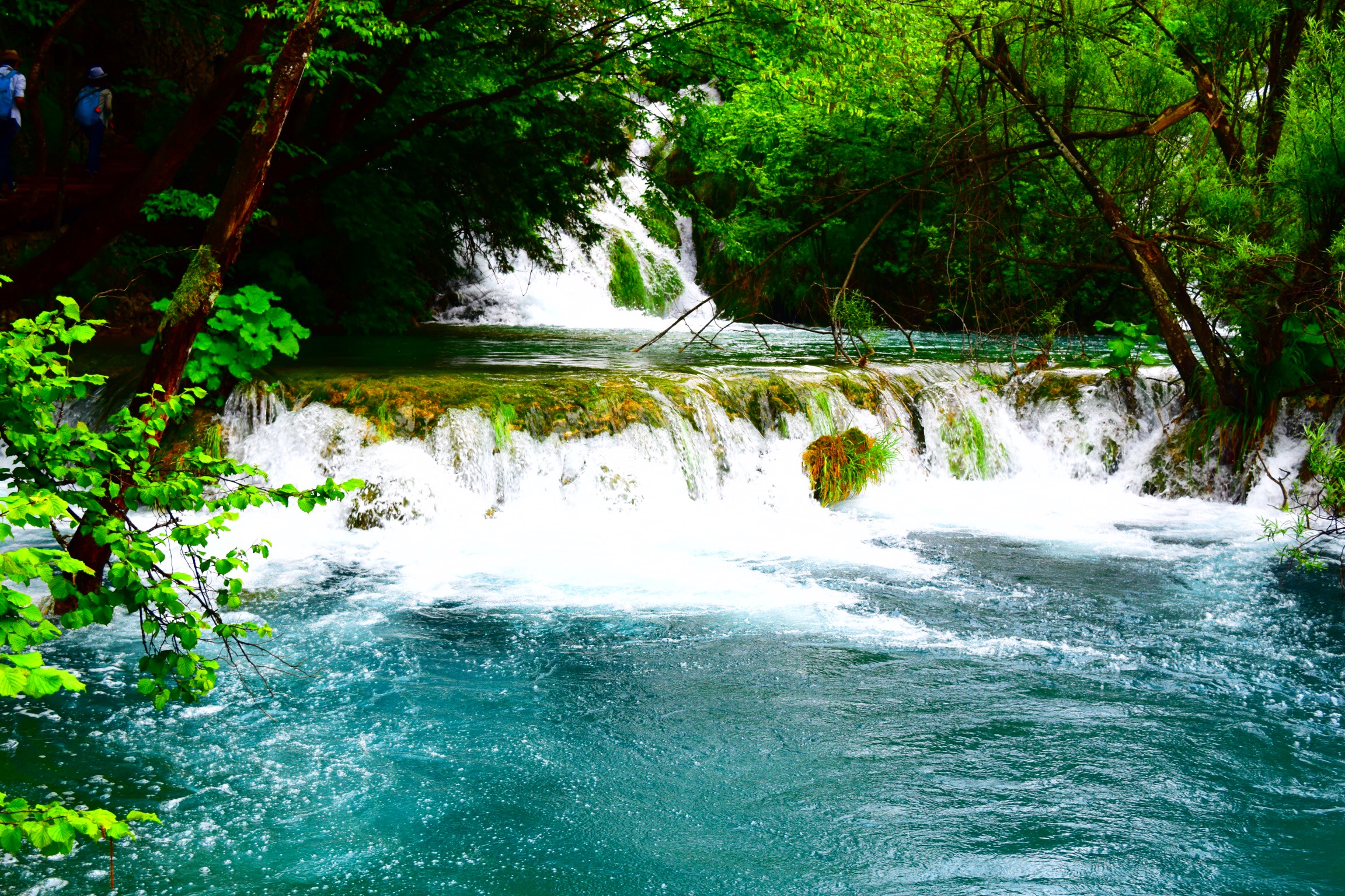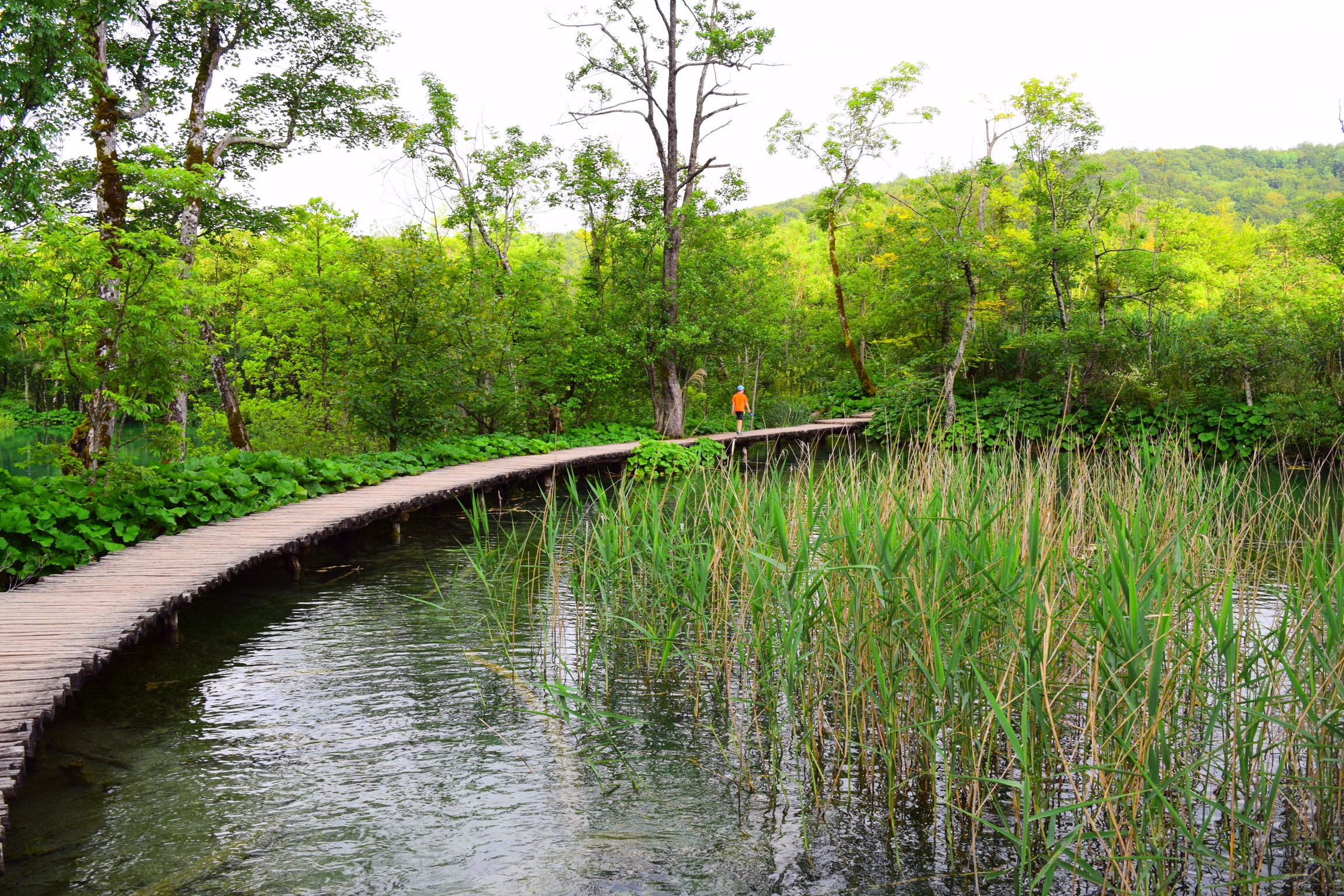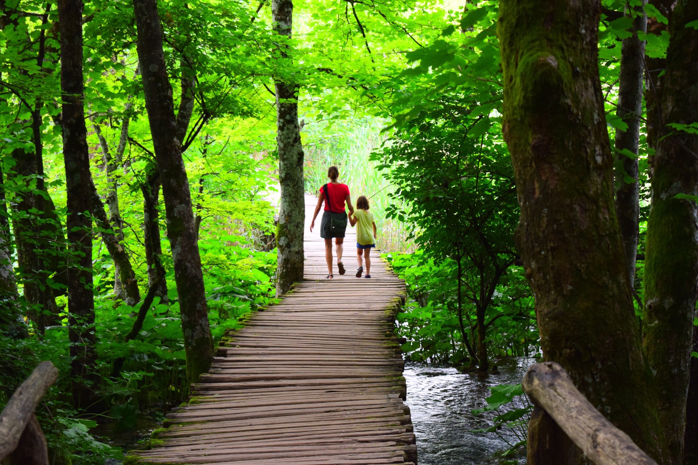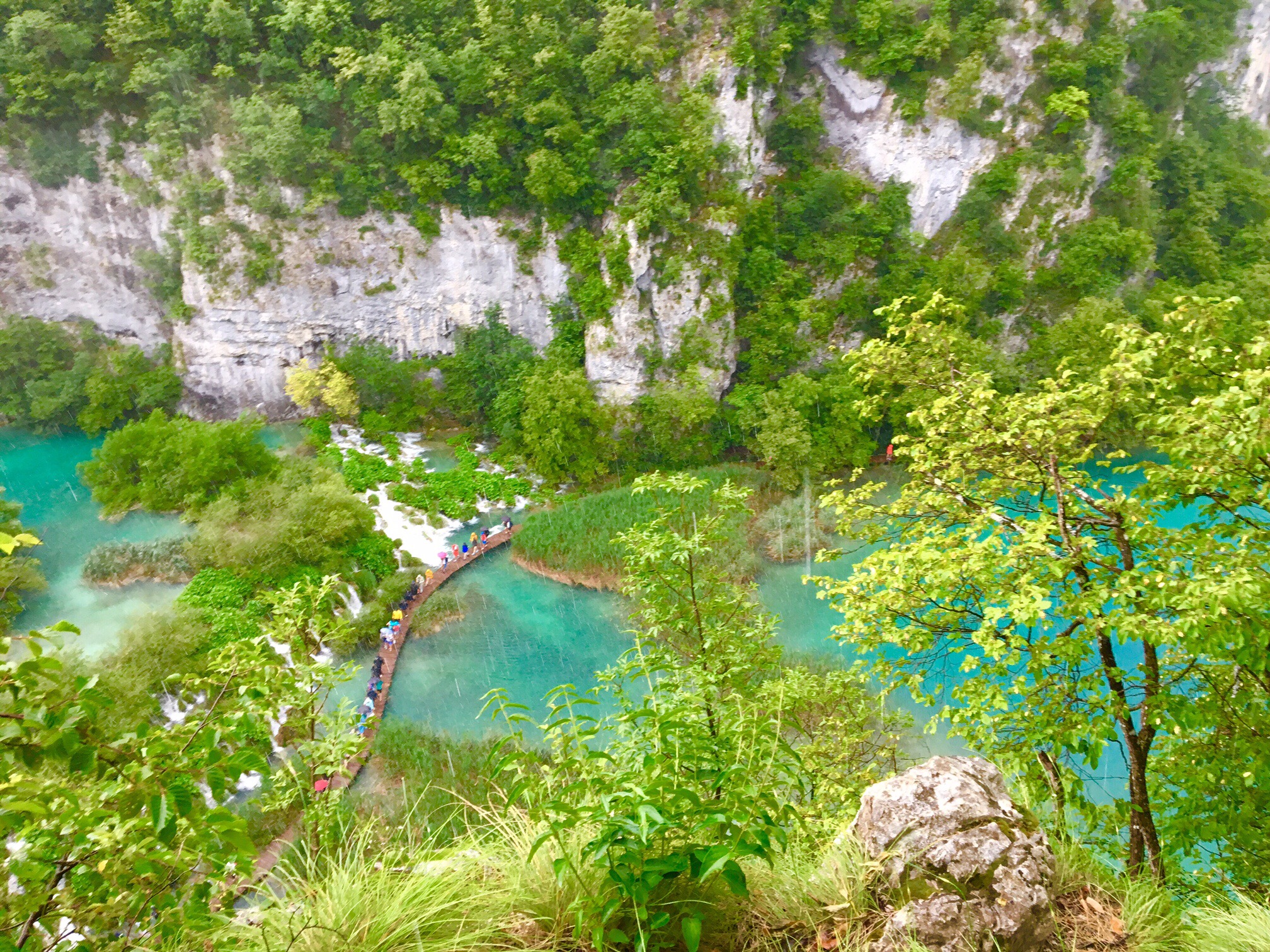Next we headed to the Plitvice Lakes, a park filled with lakes and waterfalls, of colors you can’t even believe are really in nature.  We had planned to get to the hotel the evening before, hike both the upper lakes and lower lakes the next day, then drive back across Croatia to our next destination.  But we changed our minds last minute and bought a 2 day pass.  We got there 2 1/2 hours before the park closed and hiked the upper lakes.  You start at the middle of the elevation and keep hiking up many level of lakes and waterfalls. We made it to the top just in time to get the last shuttle back to the parking lot – the kids were beat by the end but we literally saw only 6 other people the entire time.  The next morning we got there early, avoided the massive crowds yet again, hiked the lower lakes and had just finished when a torrential rainstorm came.   It was a breathtaking 2 days.  And we stayed at a bed and breakfast with a huge grassy field for Trip and Greg to play catch, and a playground for Taylor and her new friend (the granddaughter of the owner who was visiting from Serbia) to play on.