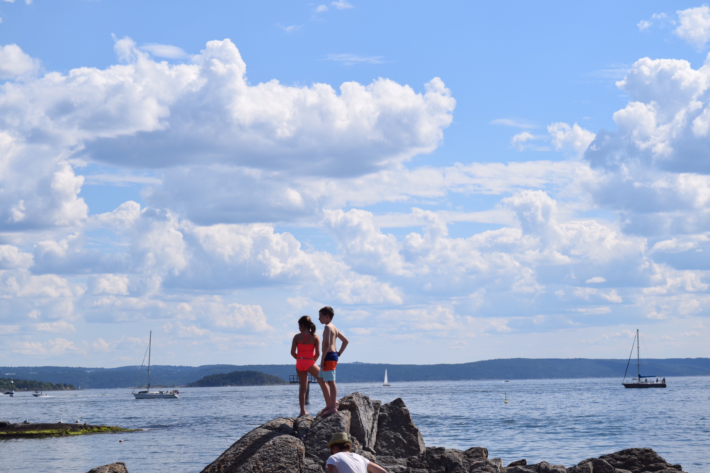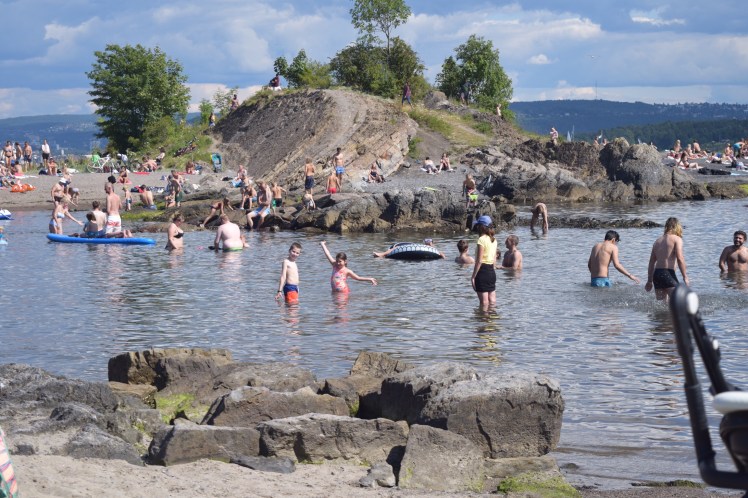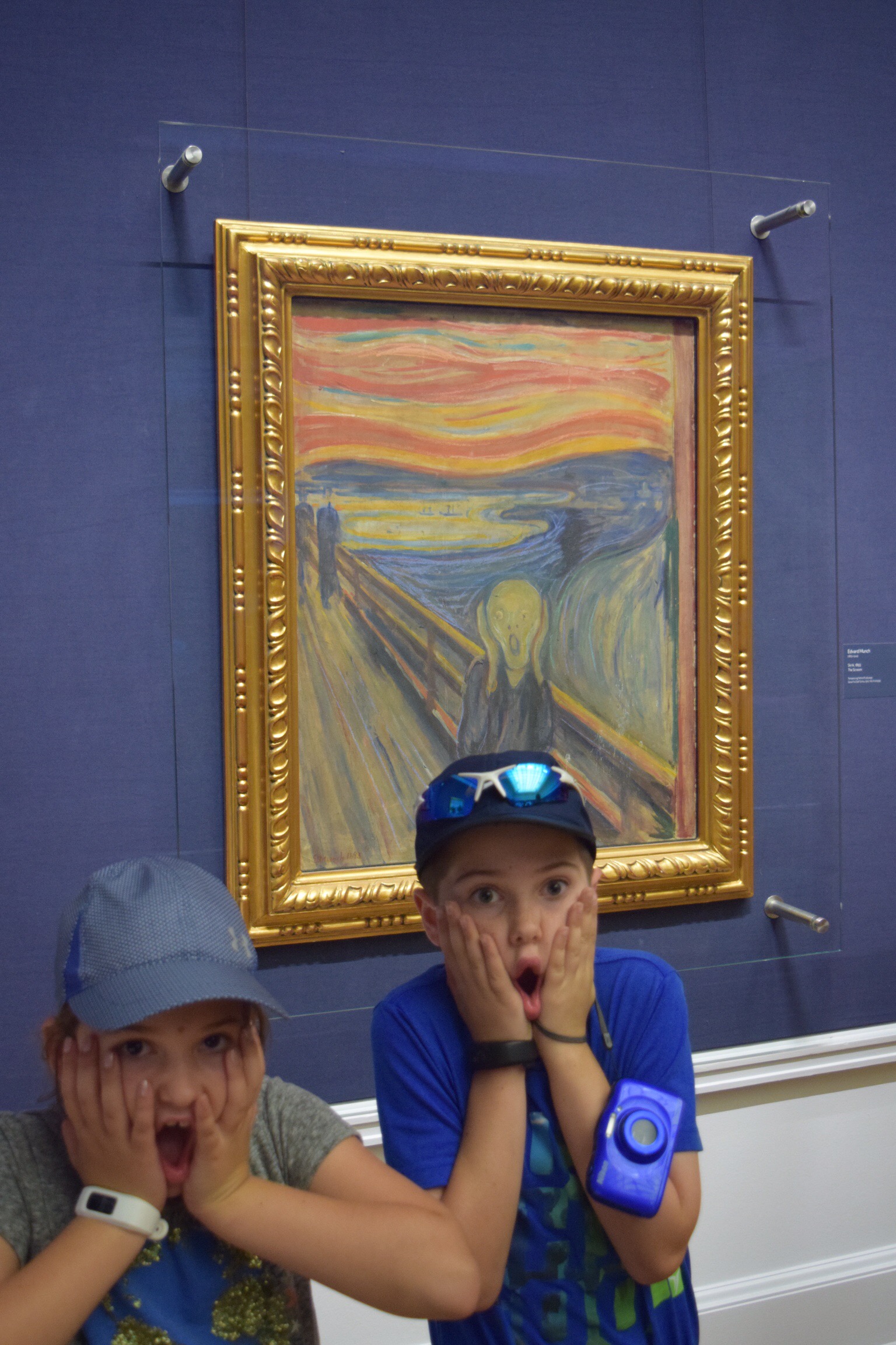 The second day was a full day of museums: the Viking ship museum, Fram museum about polar expedition, Kon Tiki museum about a tiny boat that traveled the Pacific, the National Gallery where we saw Munch’s “the Scream” and the Nobel Peace Center. Everything was very interesting to both the adults and the kids. Taylor had read about a beach she wanted to check out so we packed their swimsuits and took a detour mid-museums to head to a public beach where the kids swam in the very cold water and climbed on the rocks overlooking the fjord. We finished the day and grabbed some dinner and beers and headed home after a long day.